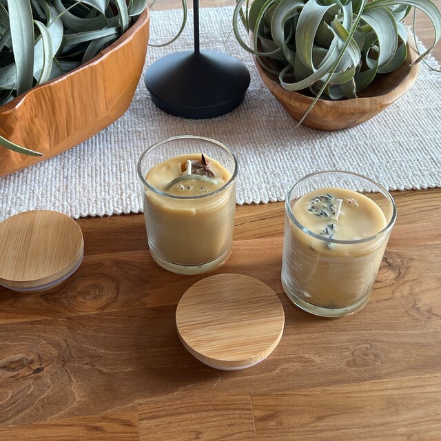 – 2 pcs 7 oz Glass Jars with Wooden Lids;